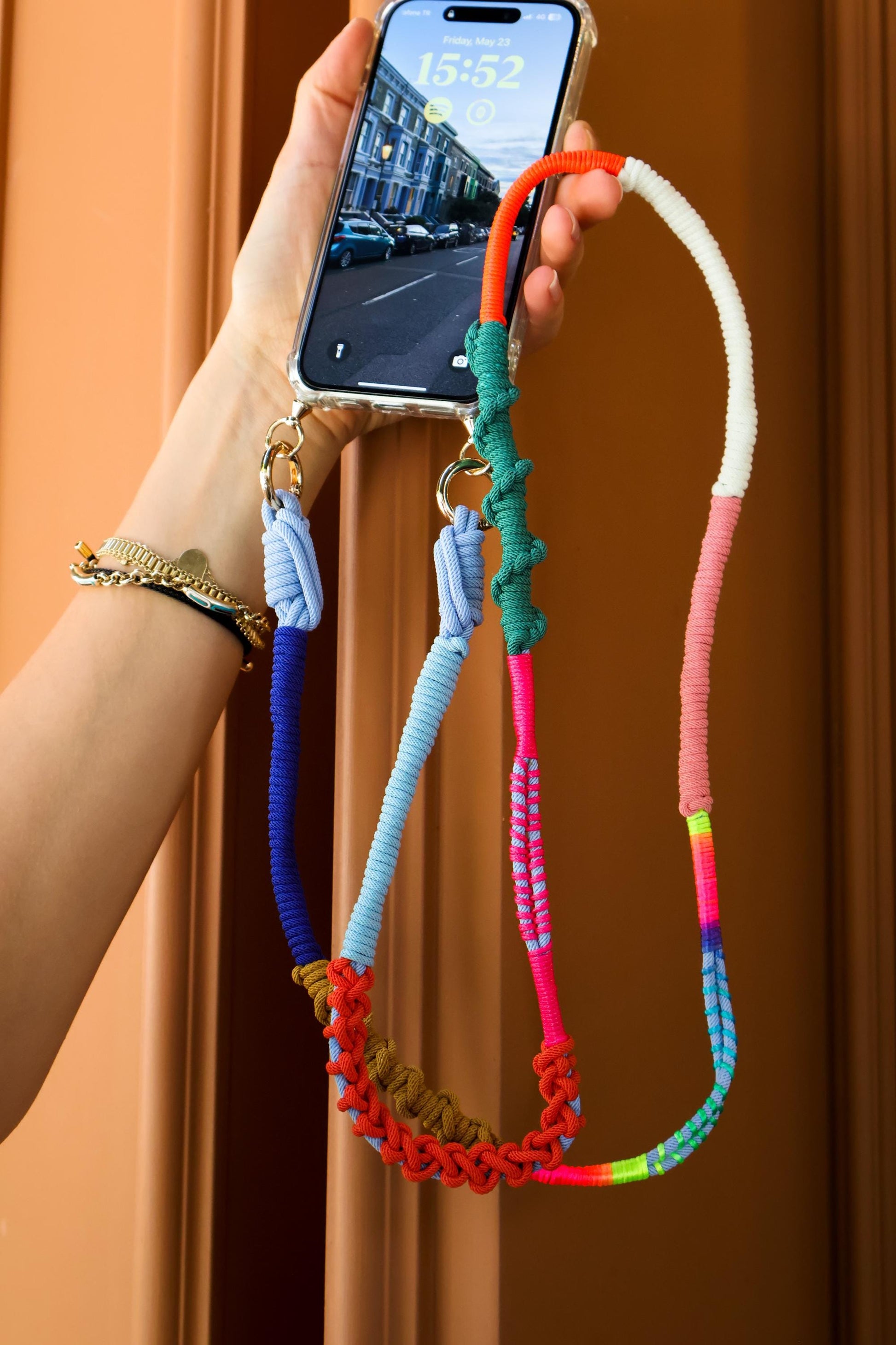 Some accessories whisper; this one declares. A continuous braid of hand-knotted color that refuses to fade into the background, designed for those who have mastered the art of hands-free living without sacrificing an ounce of style.